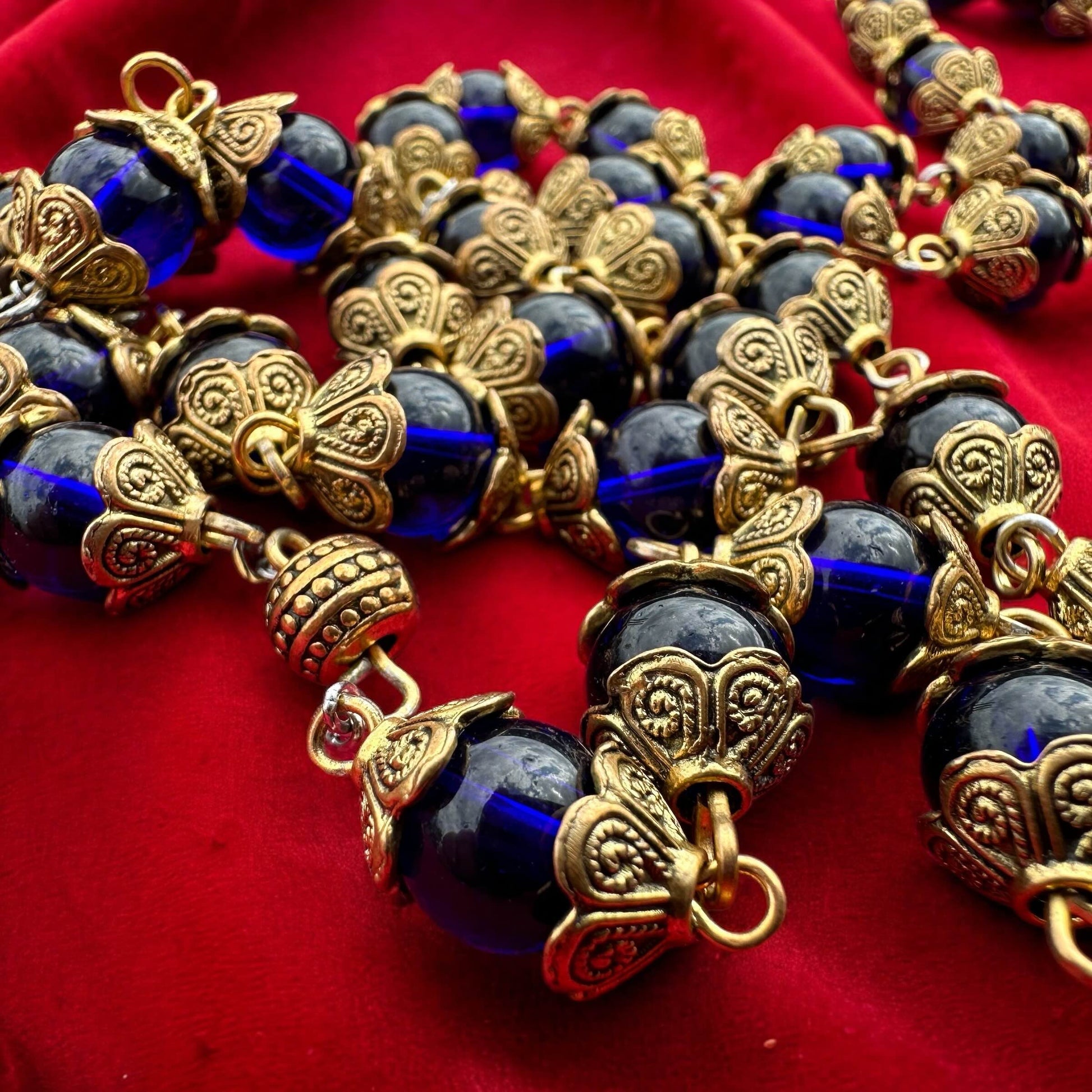 This stunning handmade Blue Glass and Gold Rosary combines elegant design with heartfelt devotion. The vibrant blue glass beads are accompanied by a gold Pardon Crucifix and beautiful gold Immaculate Heart of Mary, creating a striking contrast. Expertly crafted by hand, this Rosary is made with strong and durable chain.