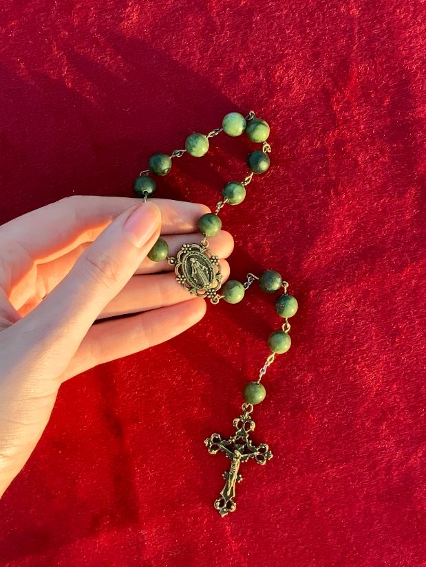 Experience the beauty and serenity of this handmade Green Jade Single Decade Rosary. Every bead is handcrafted with love and care, creating a unique and meaningful piece. Carry it with you to bring a sense of peace and balance to your daily life. Perfect for prayer and meditation.