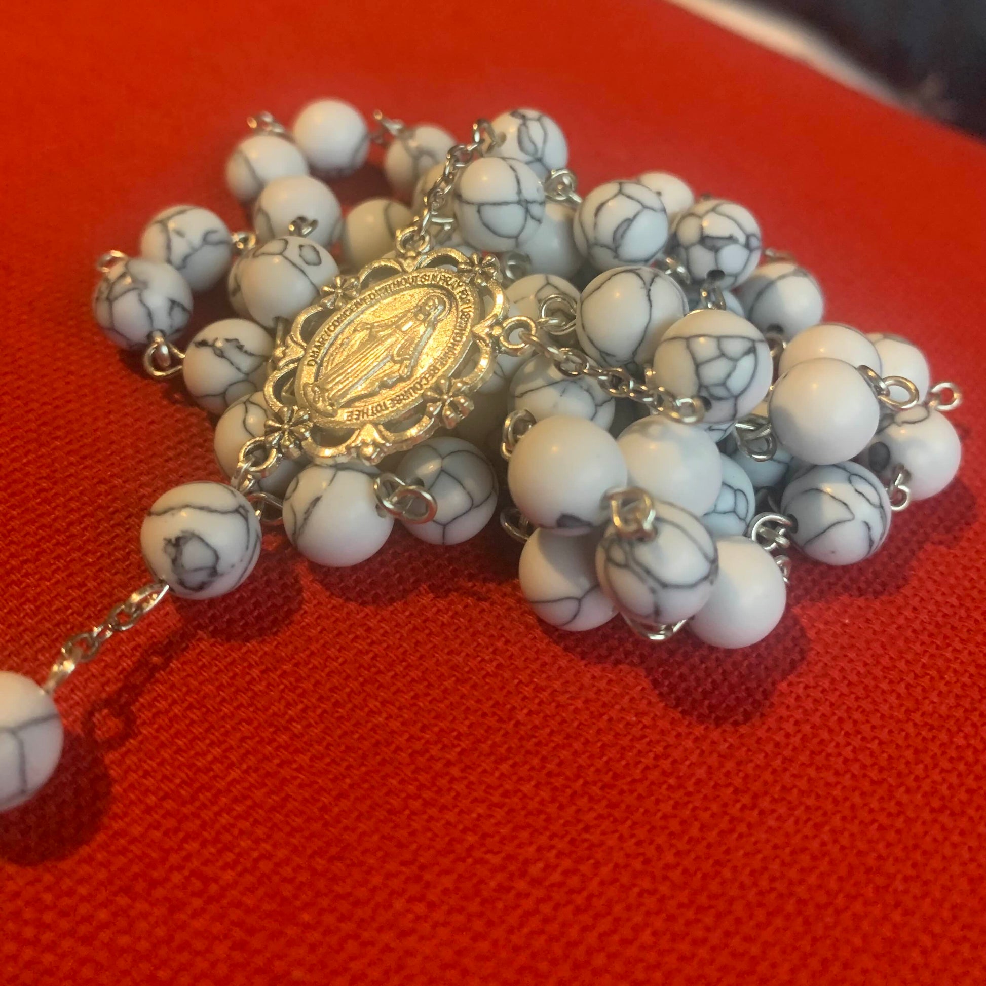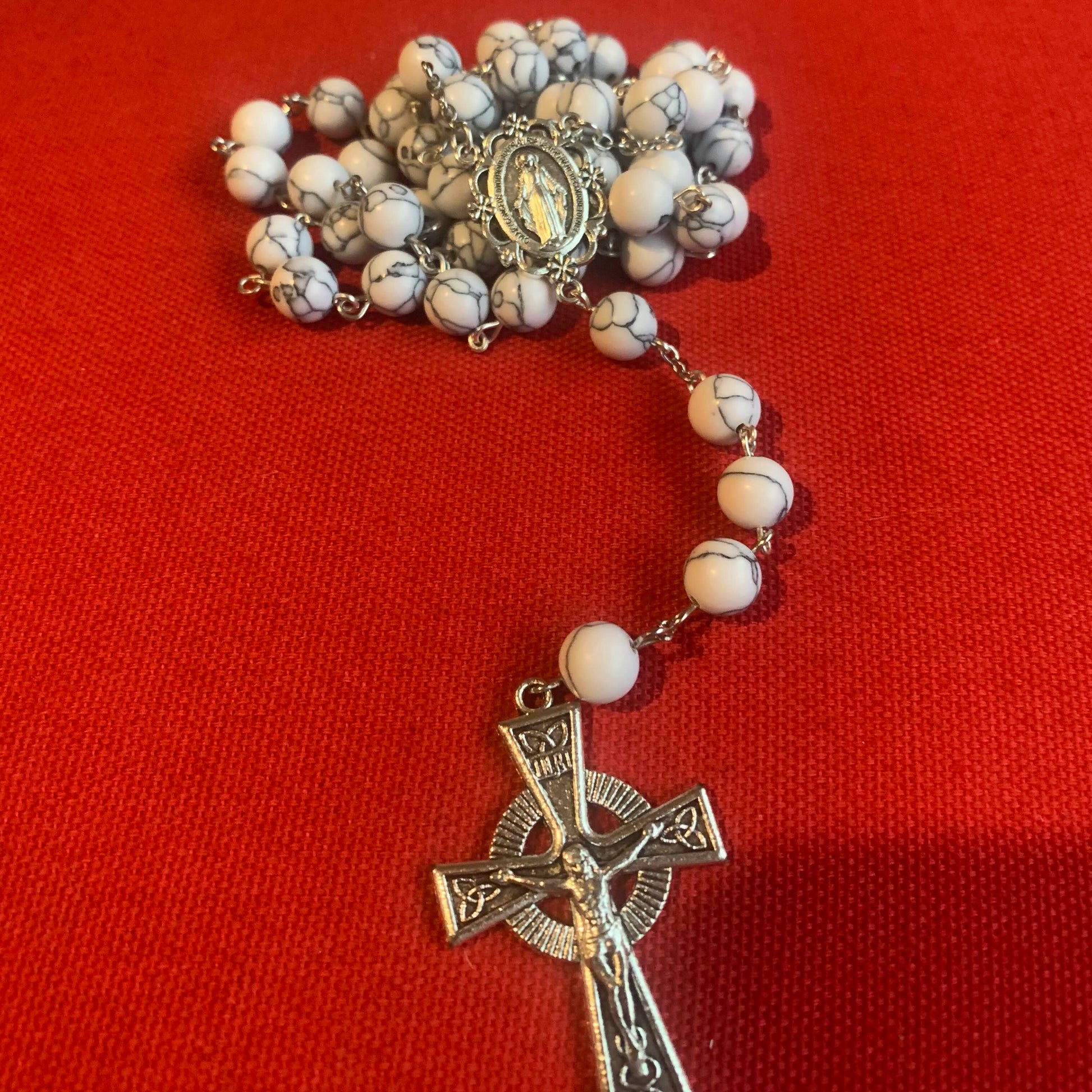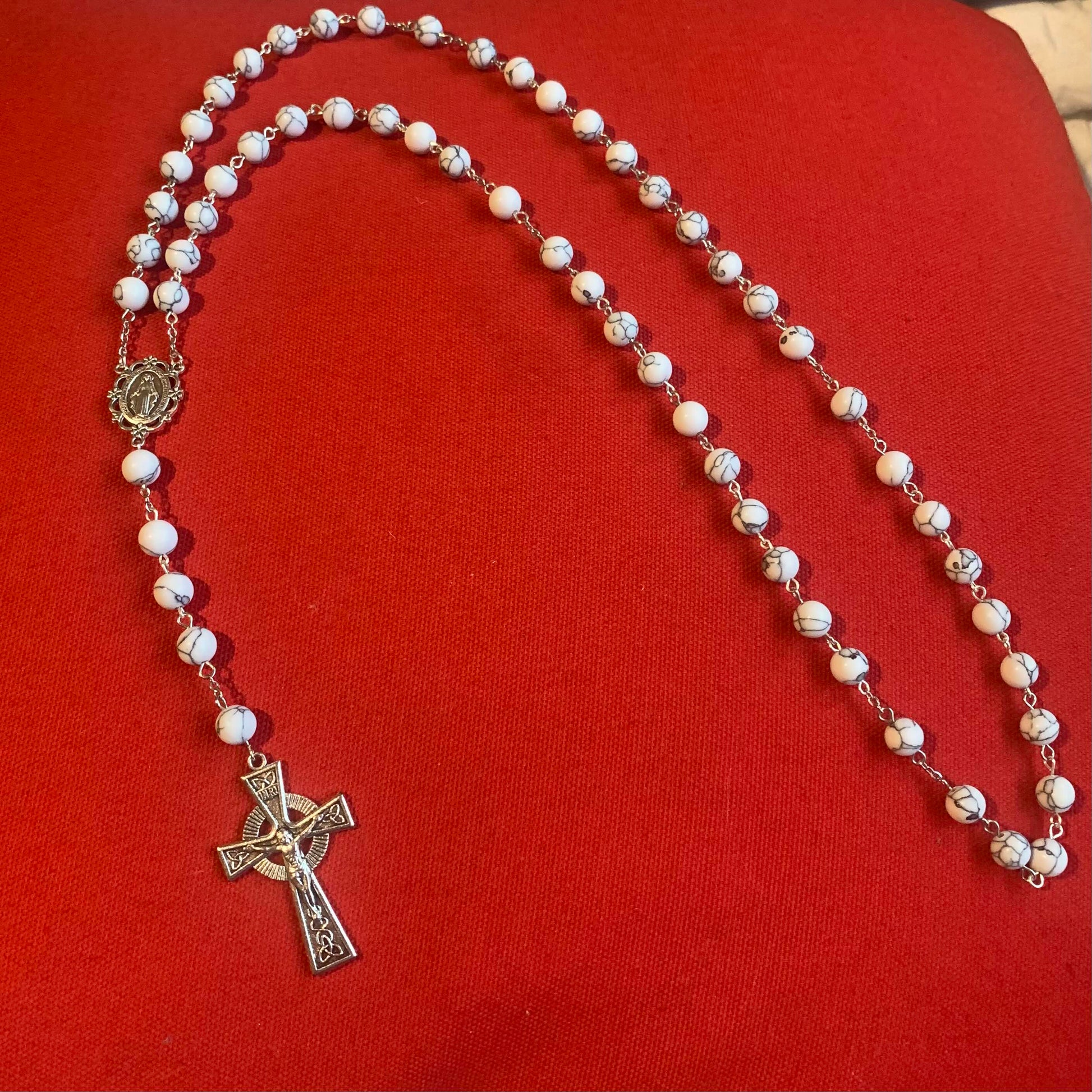Handmade White Turquoise Stone Rosary With Celtic Crucifix